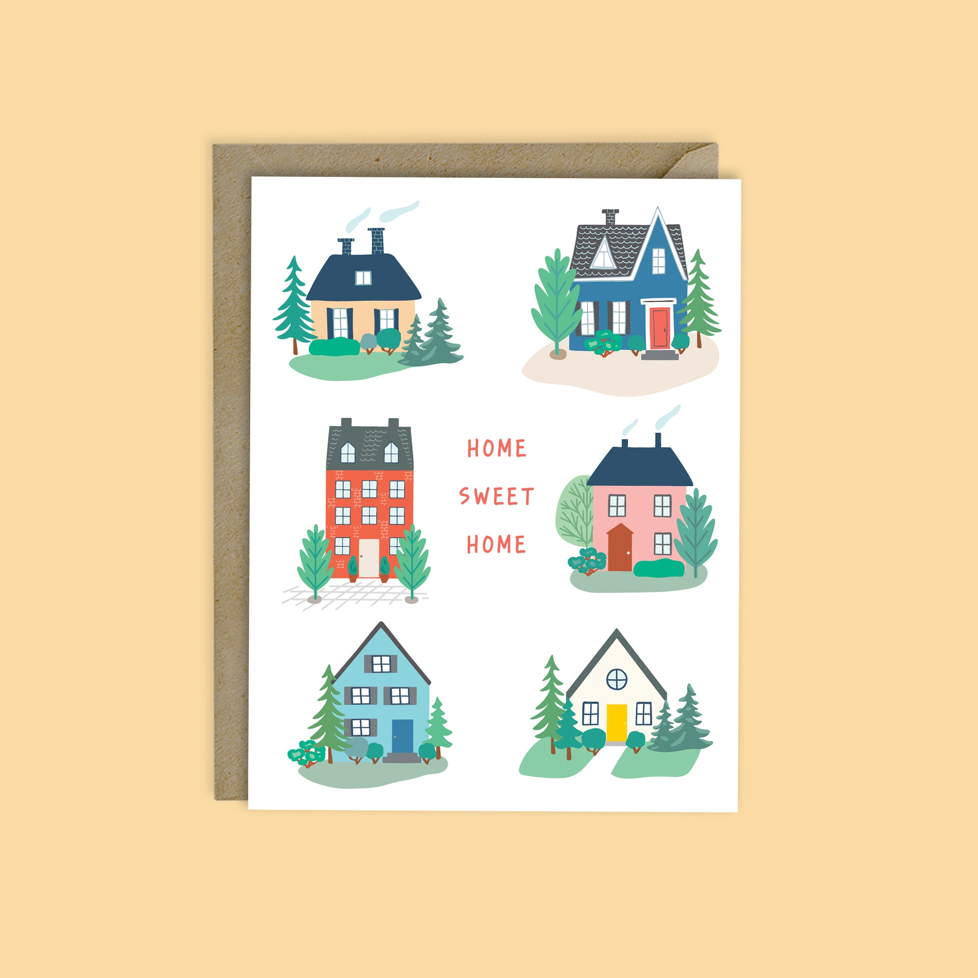 A beautifully illustrated card with lovely homes to congratulate your friends and family on their new home!