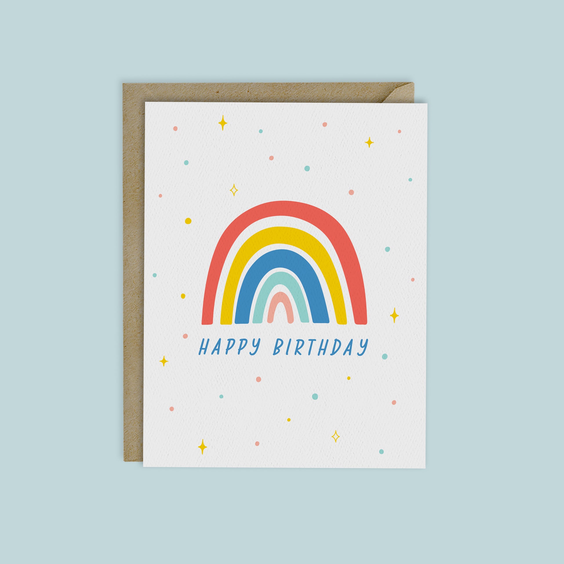 Bring some sunshine and rainbows to your birthday with this cheerful Rainbow Happy Birthday card. We also have a matching wrapping paper and gift tag for your birthday gift.!
