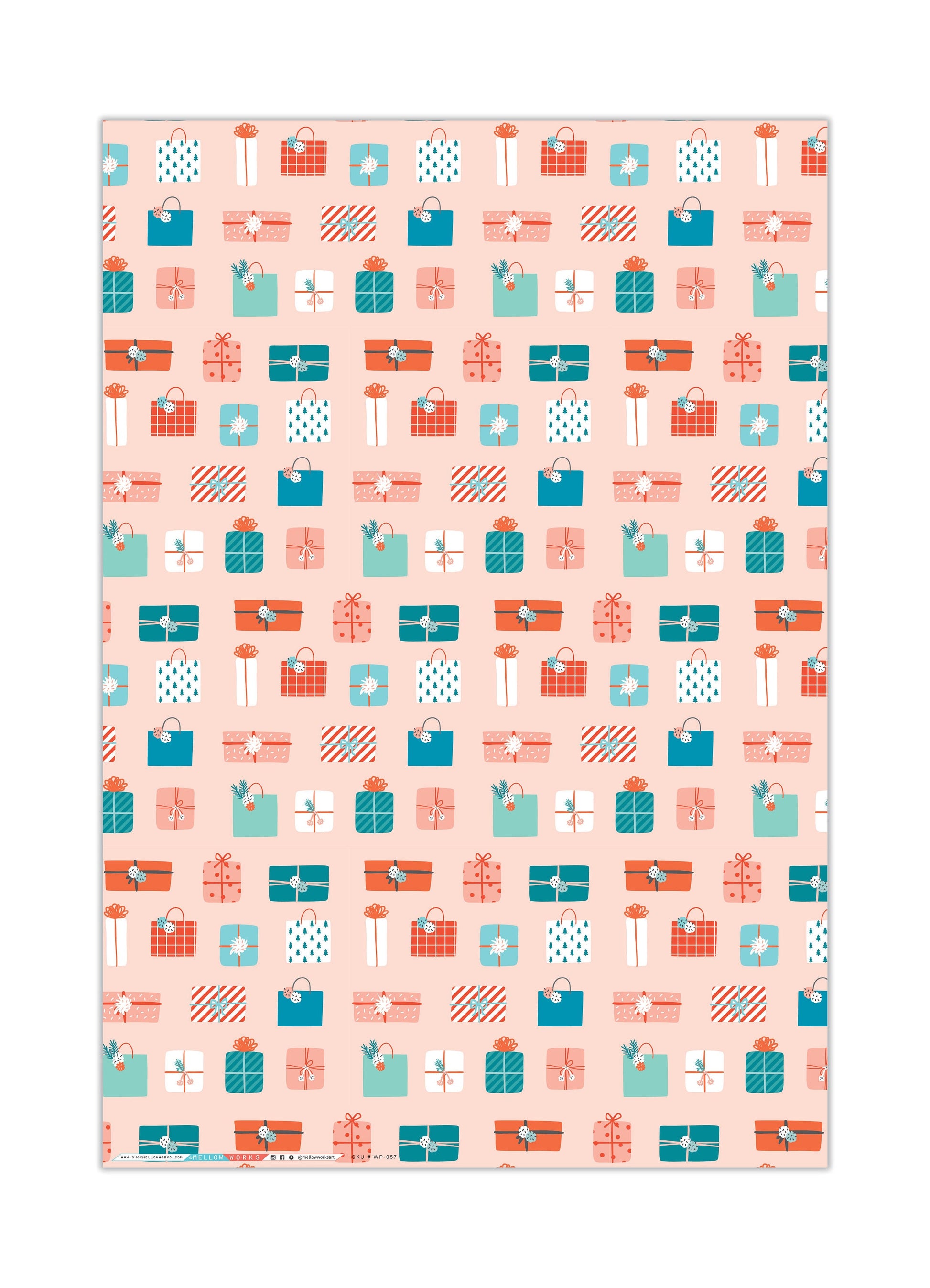 This festive Christmas Gifts paper has all the trimmings for wrapping and gifting during the holidays - gift boxes, bags, strings, ribbons, pompoms, bows, and even pine leaves! Get creative and have fun!