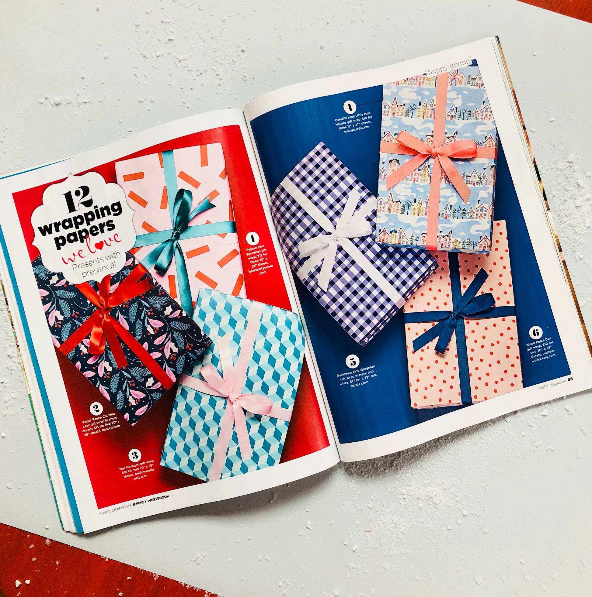 Printed in rich colors on thick luxurious paper which makes it easy to wrap a box with perfect folds, cuts clean and does not rip while wrapping.